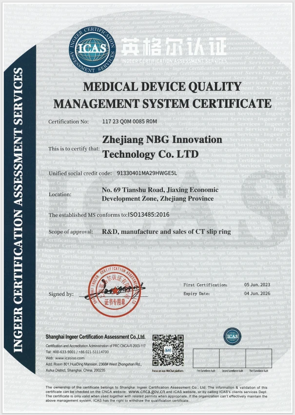 NBG group's Zhejiang manufacturing base obtained ISO13485 system certification in June 2023, the introduction of ISO13485 will help NBG's Zhejiang manufacturing base to further improve quality control capabilities and better serve our customers.